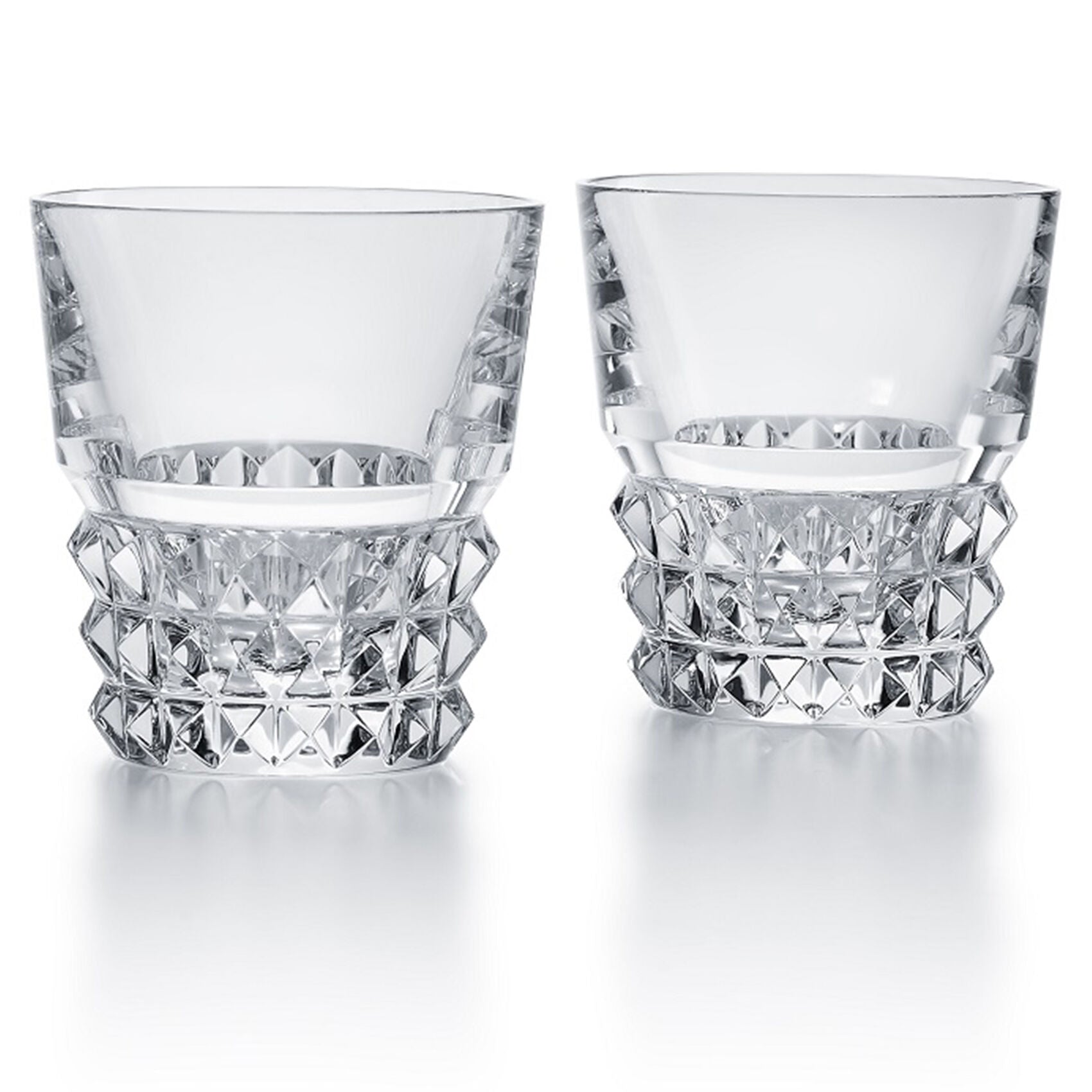 Designed by Thomas Bastide, 2 tumblers with diamond-shaped surfaces and inside ruffles.