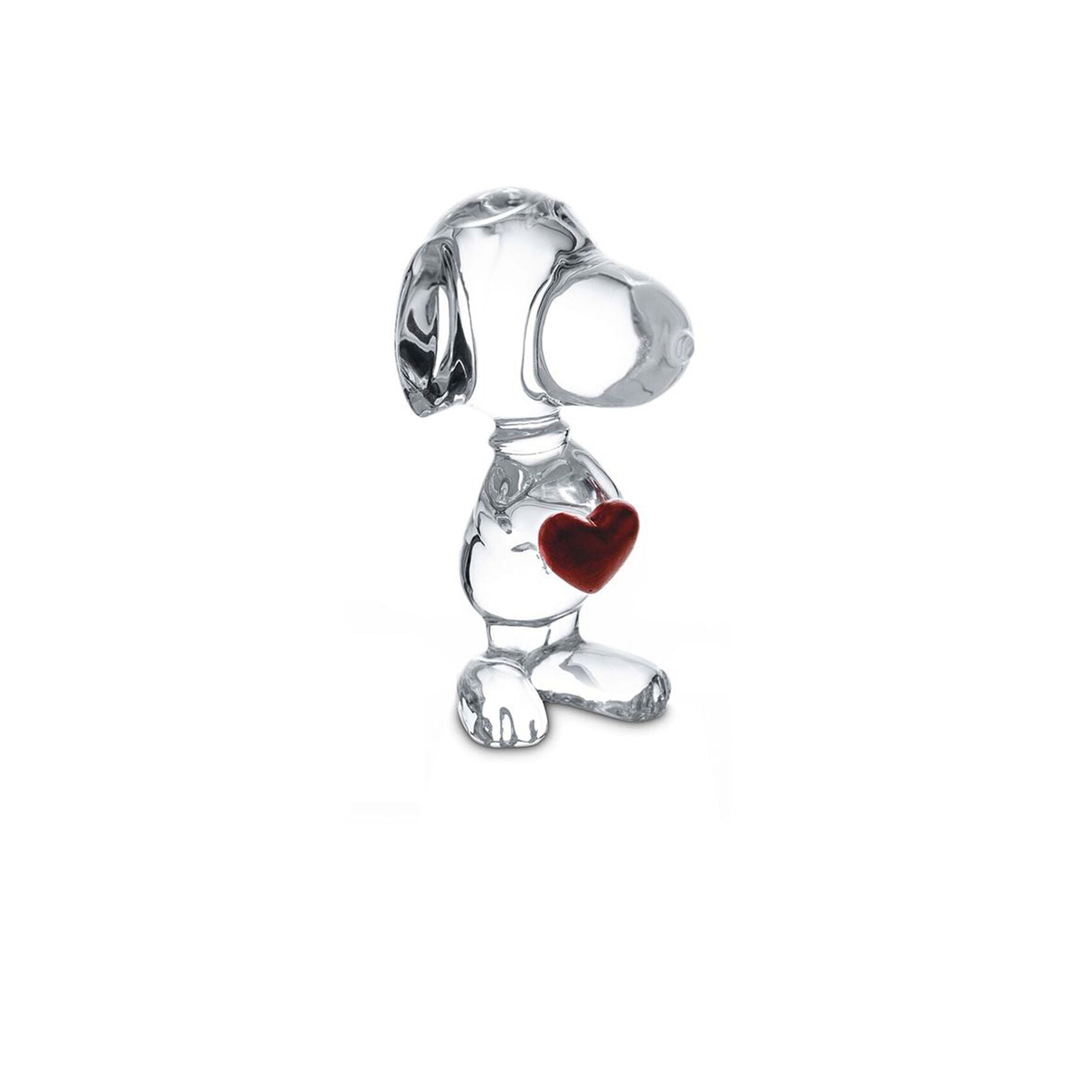 The Baccarat Clear crystal Snoopy Heart figurine references the character created by cartoonist Charles M. Schulz.
