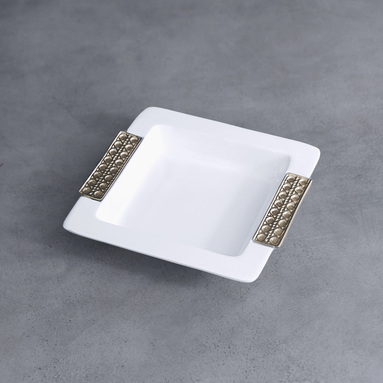 The THANNI Rattan Beverage Napkin Holder (White and Gold) is a handsome, multi-use napkin box incorporating classic Rattan style! From the THANNI Collection, this "Not Just for Napkins" box is beautifully finished in a white enamel on the inside and outside, and can be used to hold candies, nuts, perfume bottles, paperclips, keys … and even napkins! With gold-tone handles inspired by traditional Rattan, each includes six elegant, hemstitched linen coasters. Holding 5 x 5 (folded) beverage or cocktail napkins, it incorporates the texture and weave of traditional Rattan caning on gold-tone accent handles set on a gleaming white surface. Stunning pieces, timeless and unique, this collection brings to market designs that have never been seen before. A number one trend in decorating, Rattan has an ability to feel both contemporary and vintage at the same time and transcends all interior styles and trends. Blends nicely with all the great Rattan designs, so create a table with a carefree and classy, Beatriz Ball twist! You will not believe that the finishes are so sturdy that they can go even in commercial dishwashers! An original Beatriz Ball design, sustainably handmade of a top quality, FDA safe, easy-care, oven and freezer friendly aluminum alloy.