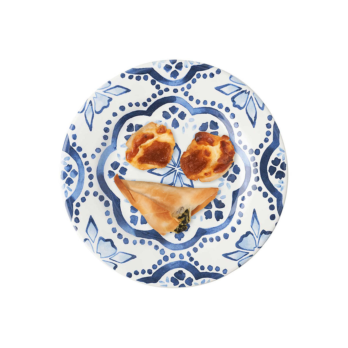 From our Wanderlust Collection- A journey to the sandy Iberian coast inspired this Iberian Journey motif. We've reinterpreted this regions stunning cobalt blue painted tiles onto key accent pieces such as this side/cocktail plate.