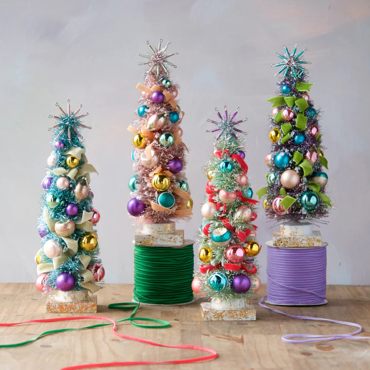 Glitterville Pastel Village Tree with Glass Ornaments, Assorted, 12"