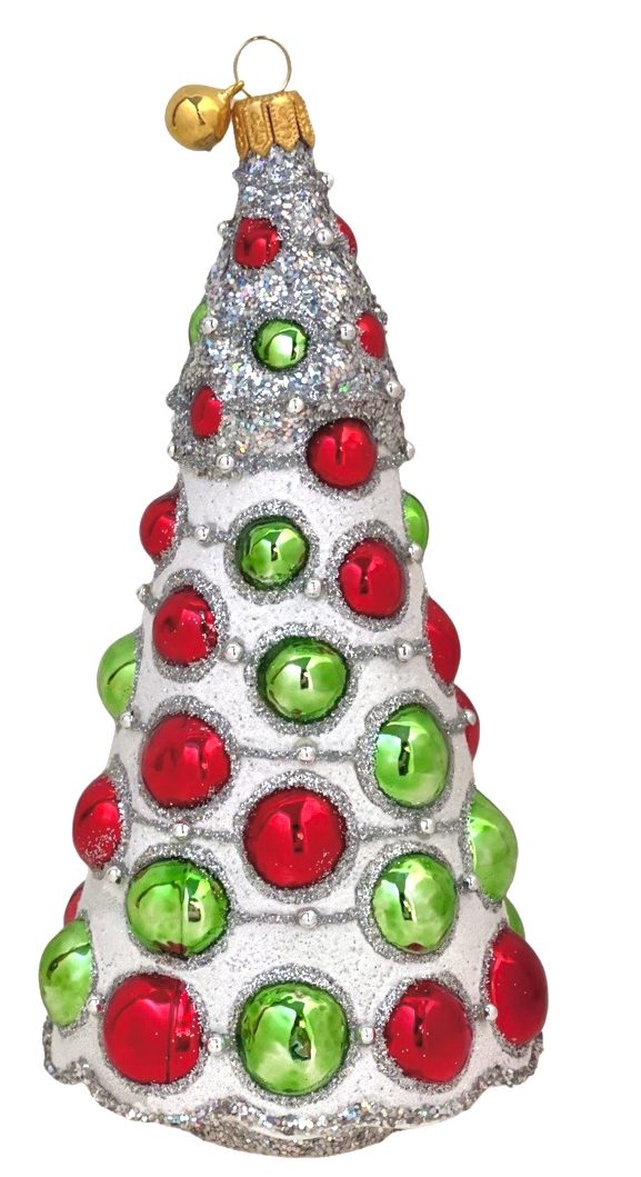 - Sterling Silver Lined Hand Blown Glass Retro Christmas Tree Ornament Decoration
