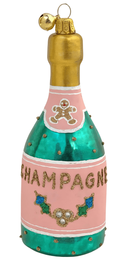 • Fun, Whimsical Pink and Green Gingerbread Man Champagne Bottle Ornament