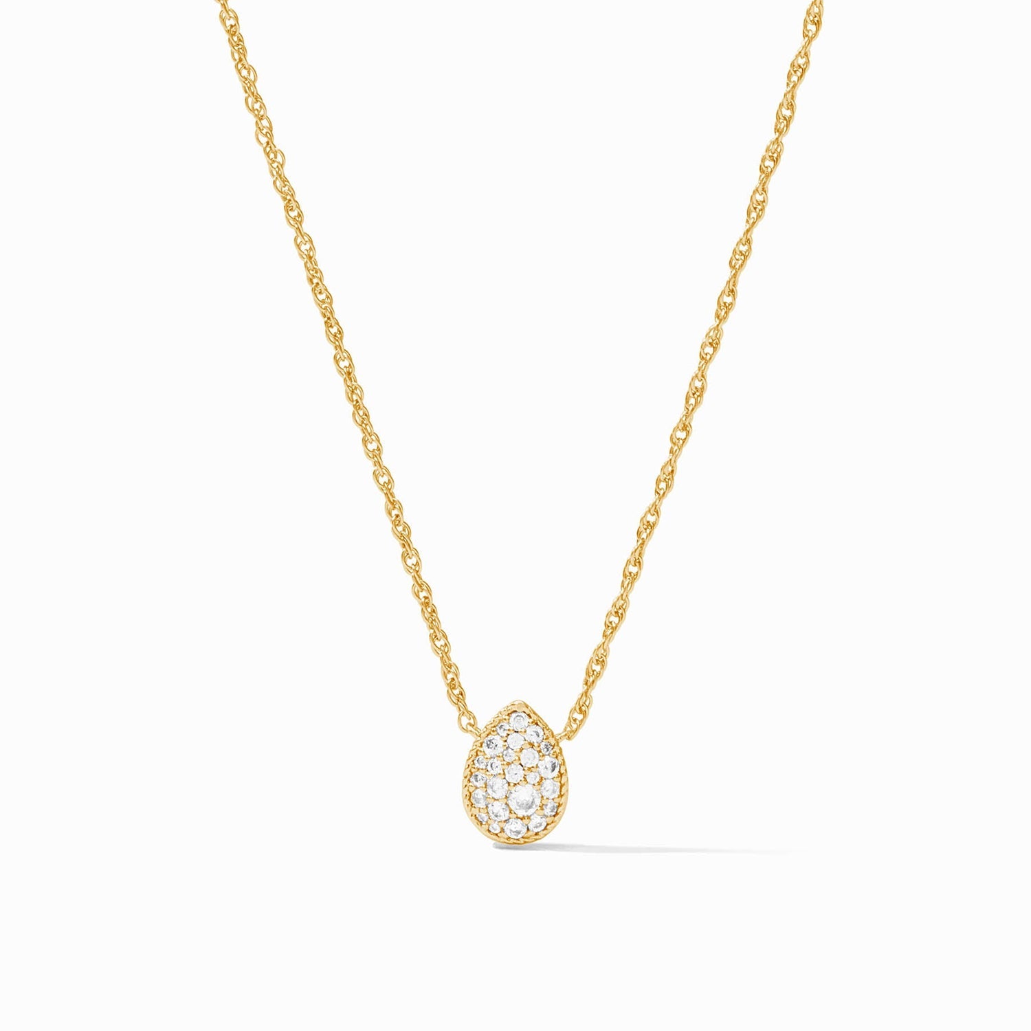 A teardrop composed of various sizes of sparkling pavé, finished on a fine rope chain.