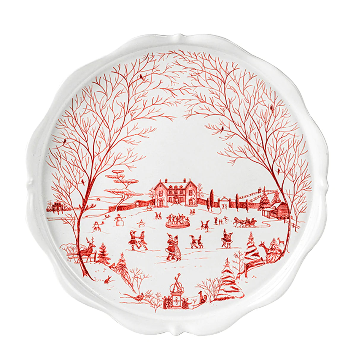 It’s party time at the Estate and a festive scene of music and merrymaking dances upon the snowy white backdrop of this jolly cake stand. A ruffled rim keeps goodies in place - from Christmas morning muffins to your best showstopping cakes.