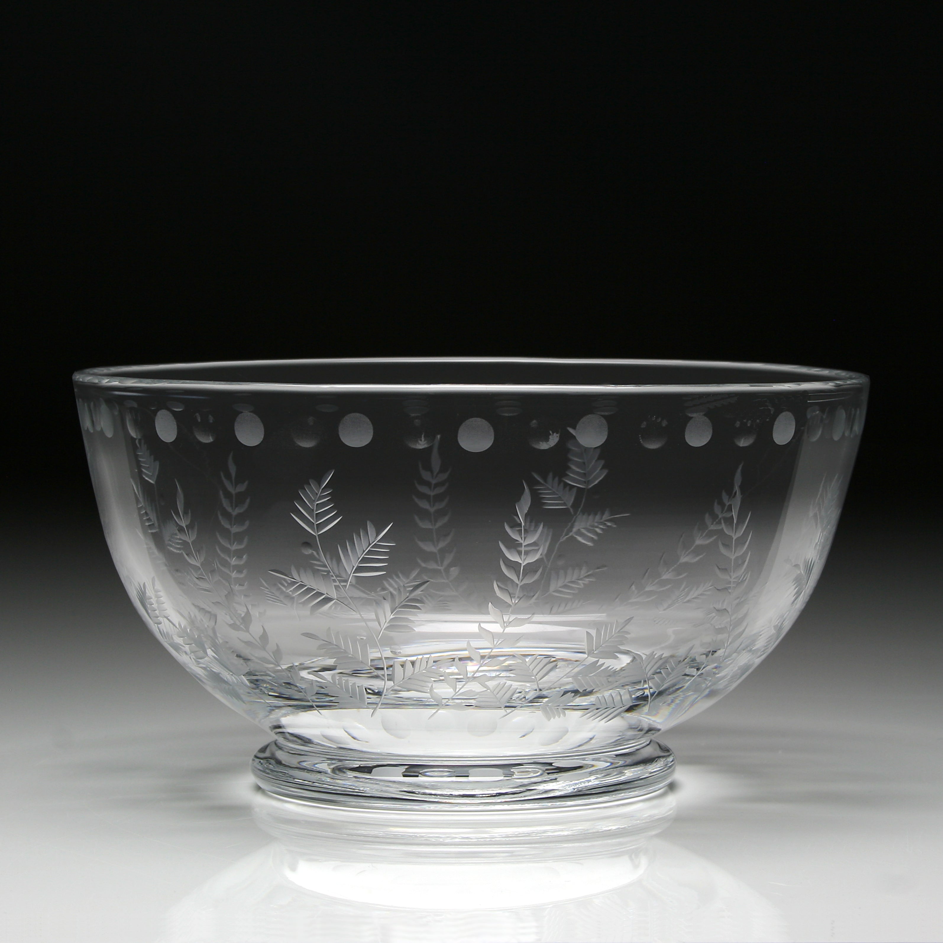 A charming hand cut leaf design on this classical bowl. A practical and perfect piece of handmade glassware.