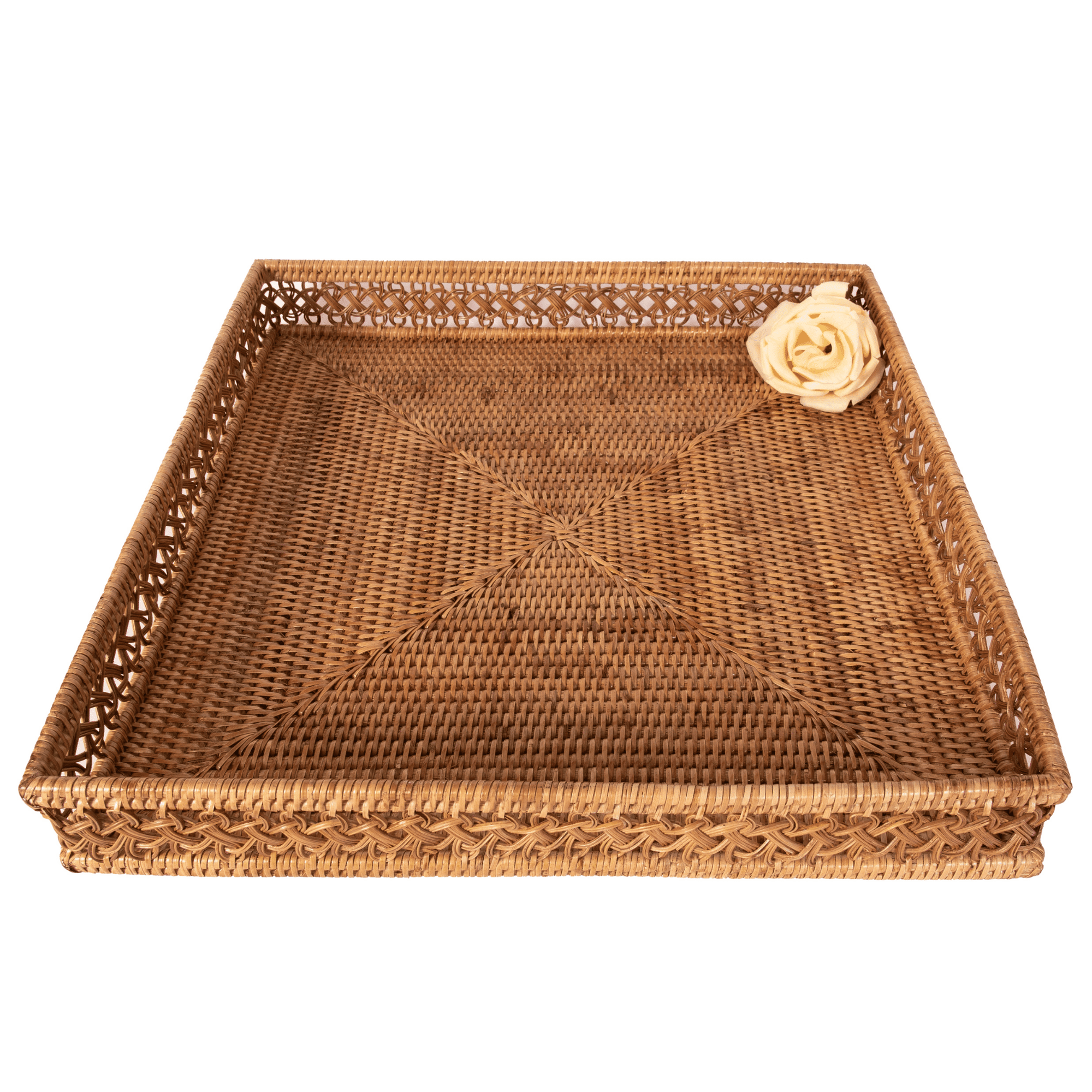 Step into sophistication with our Rattan Square Tray, which features the captivating SECA braided weaving a synthesis of artistic brilliance. This collection, made from ethically sourced Burmese rattan, exemplifies one-of-a-kind design and craftsmanship. Each tray, available in the timeless shades of Honey Brown, Tudor Black, or White Wash, bears our brand trademark of exceptional quality.