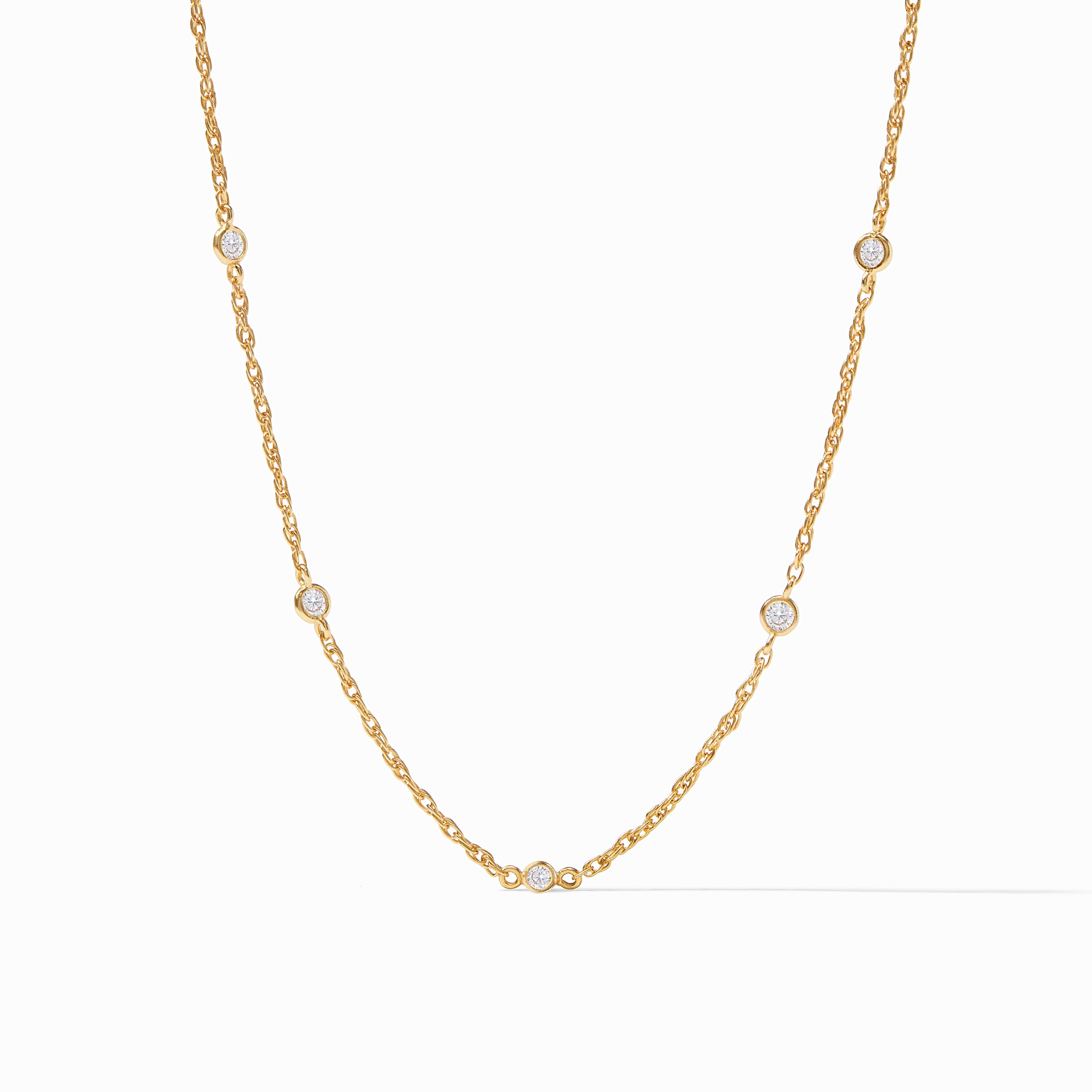 Add an understated touch of elegance to your special occasion wardrobe with the barely-there sparkle and shine of this golden, cubic zirconia-accented necklace.