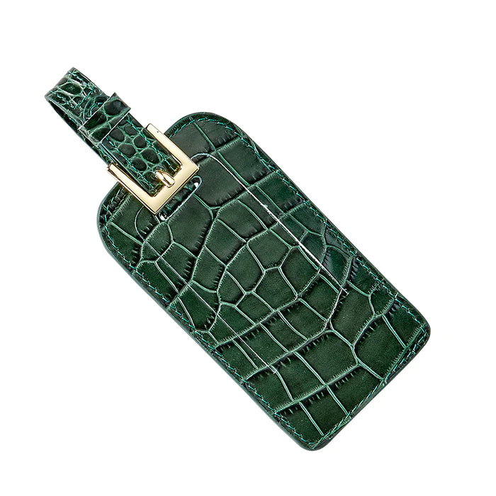 Graphic Image Luggage Tag, Emerald Crocodile Print Leather