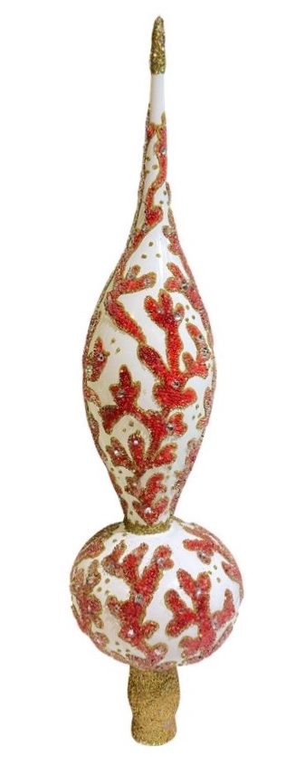 - Special Hand Painted White Tree Finial with Beautiful Beaded Red-Orange Coral Pattern