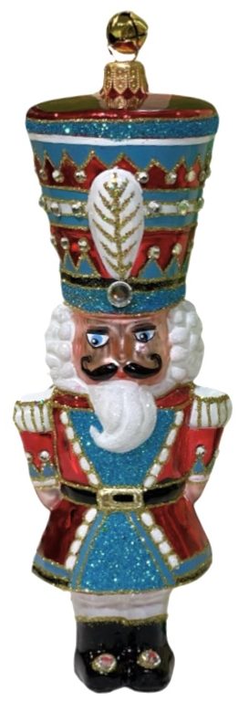 - Exquisitely Hand Painted Shiny Red Lacquer and Blue Glitter Decorated Regal Nutcracker Christmas Tree Ornament Decoration