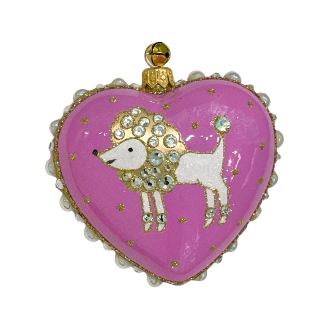 - Unique Limited Edition Collectible Keepsake Pink Poodle Heart Christmas Ornament Trimmed with Czech Crystals