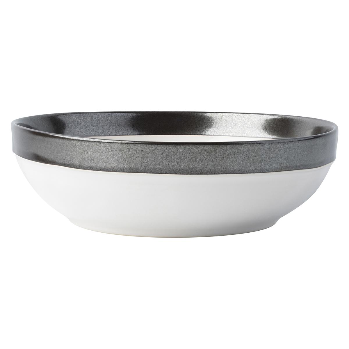 From our Emerson Collection-Rimmed in burnished Pewter Stoneware, our Emerson collection is elegant, rich and warm. This coupe bowl is subtly chic and ideal for generous portions.