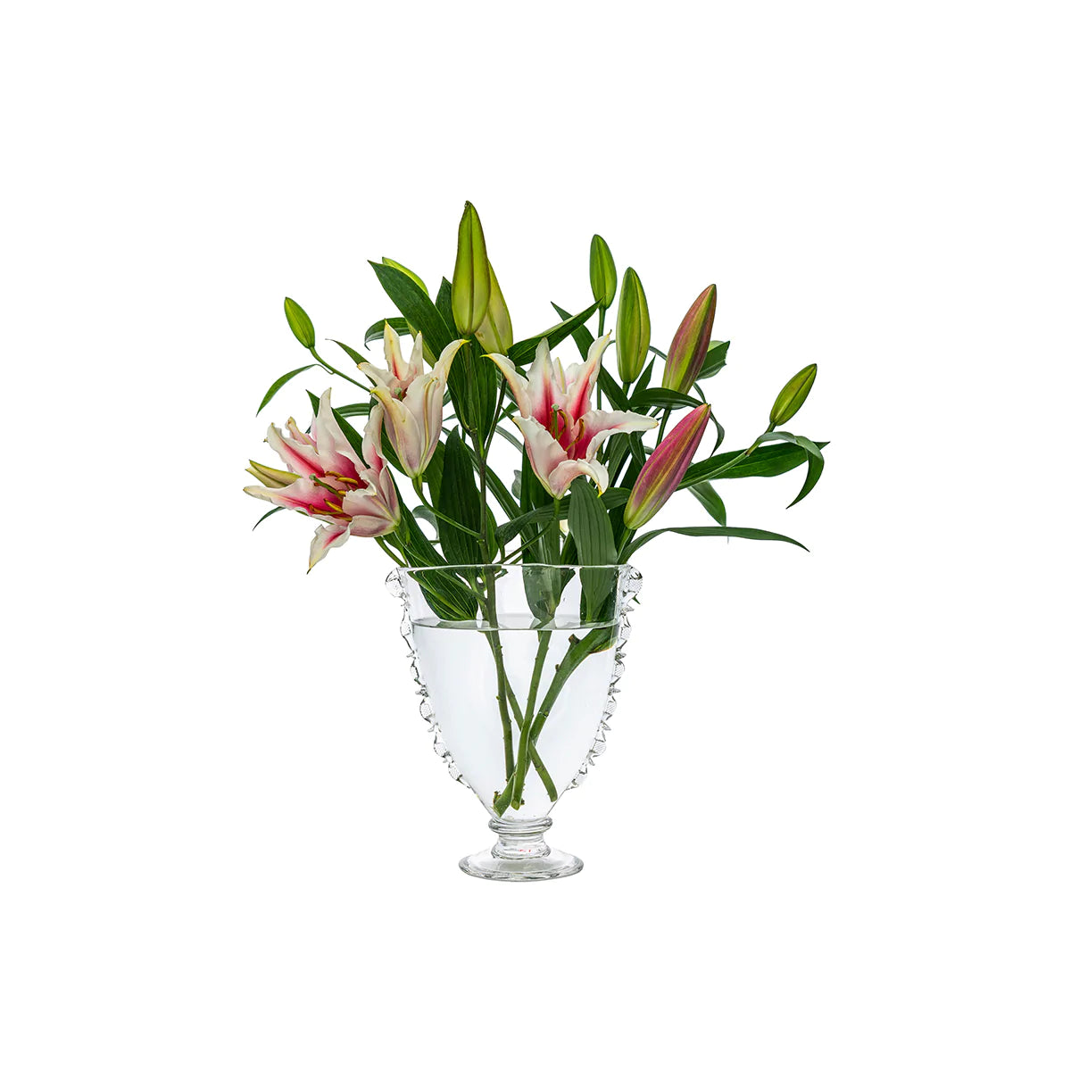 Lady Harriet is no shrinking violet, nor is she a wallflower. Her feminine fan-shaped silhouette sits upon a pedestal (where she rightly belongs) and is boldly bedecked with an eye-catching ruffle that makes a statement and steals the spotlight on any occasion.