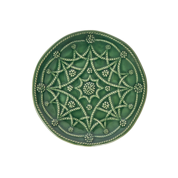 Lavish detailing of our iconic berries and threads in intricate patterns festoon these party plates that are perfect for layering with other collections to add texture, color and interest. Each motif pays homage to four of the world’s most beautiful gardens—Landriana in Italy, Villandry in France, Alcazar in Spain, and Heligan in England—and is dressed up in a deep verdant green glaze. Gift boxed.