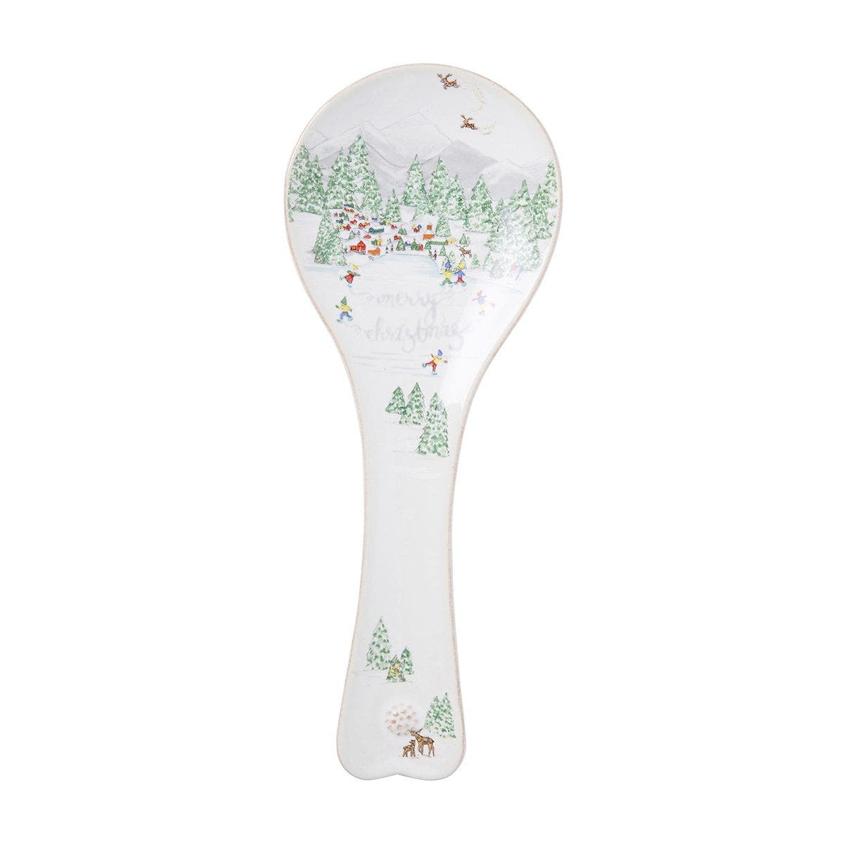From swirling marshmallows into a mug of hot chocolate or tending to a bubbling pot, this delightful spoon rest will keep your countertops clean of drips and dribbles so you can use your time to tend to what's important. Featuring illustrations of our interpretation of the magical world of the North Pole, this piece will help you deck the halls - and your house - for the Holiday season.