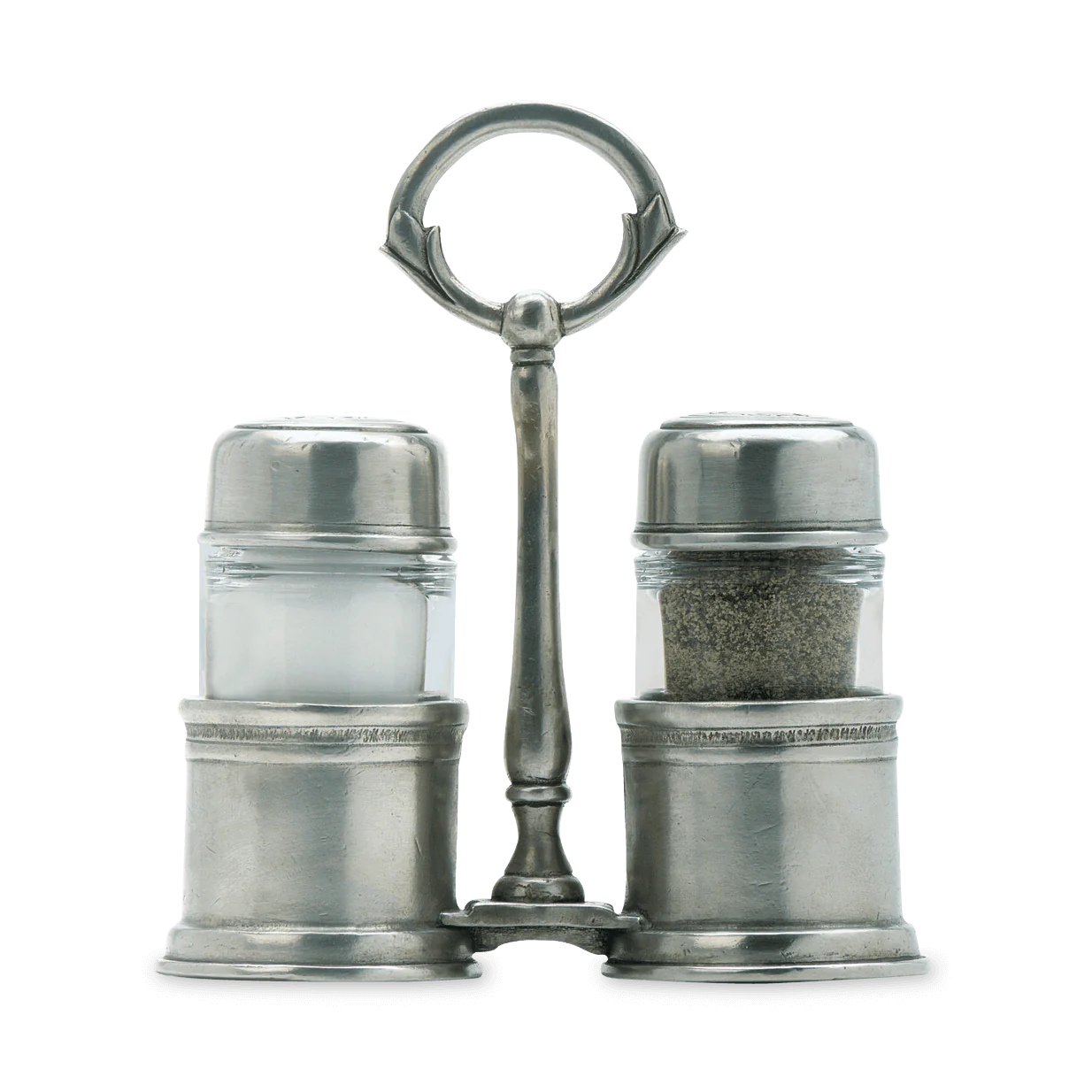 This salt and pepper caddy alleviates the separation anxiety that can arise when such necessities of daily life aren’t kept in one place. Each shaker has a removable pewter top, and the cylindrical glass body is dishwasher safe.