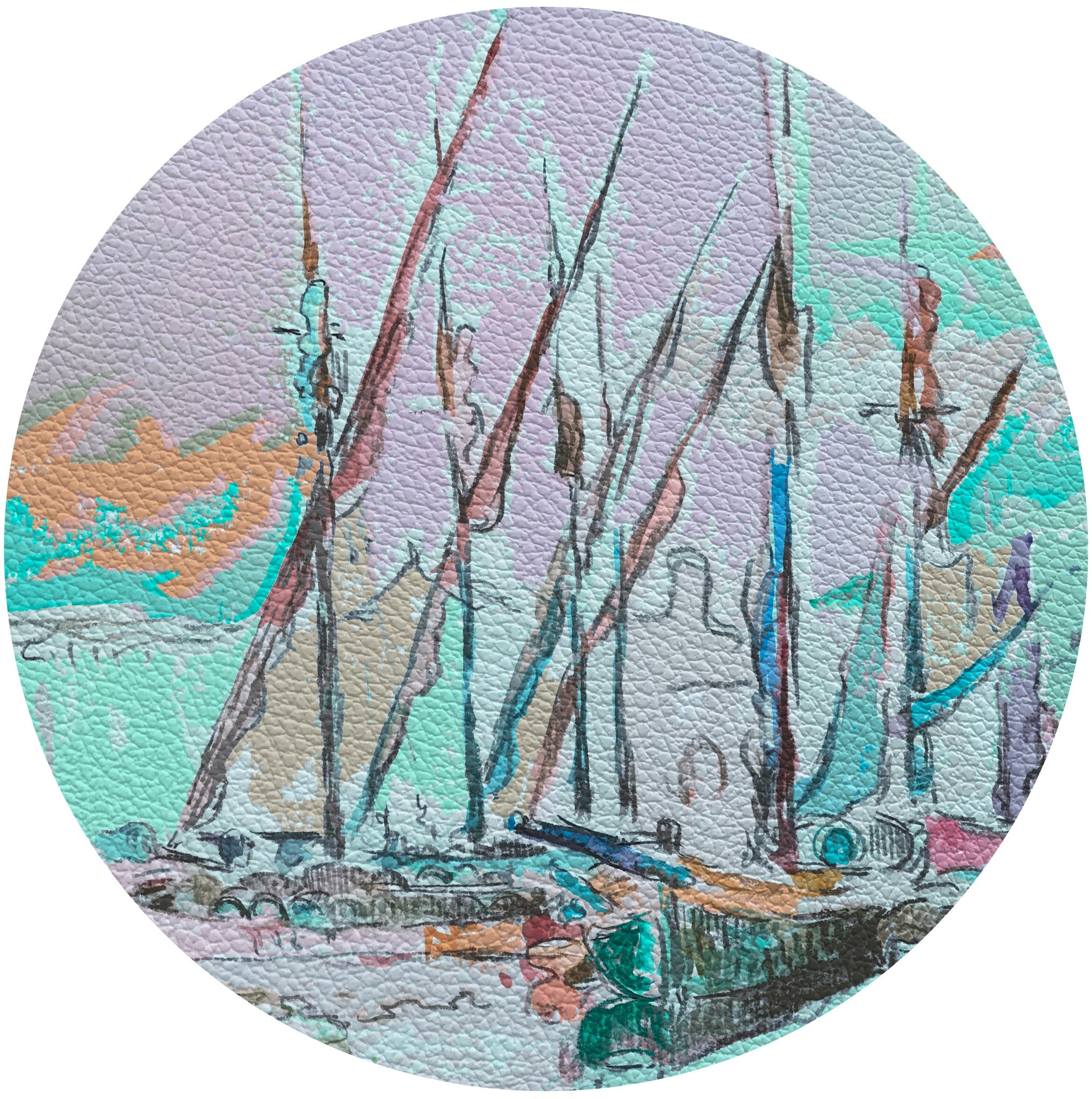 Nicolette Mayer St Tropez Boats Dusk Pebble Round Placemat
