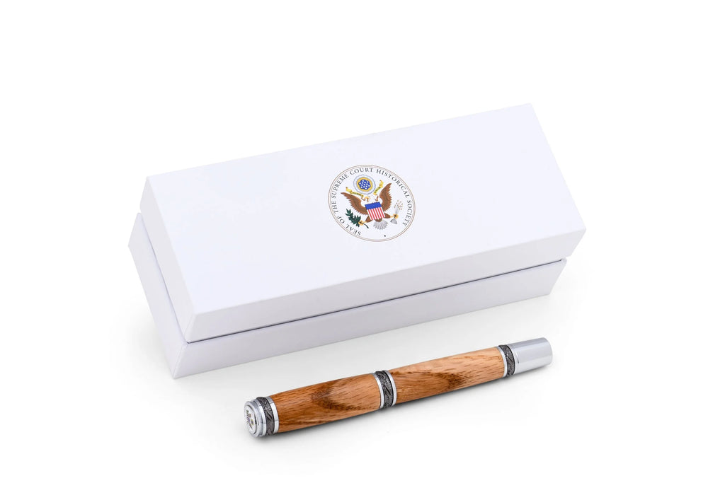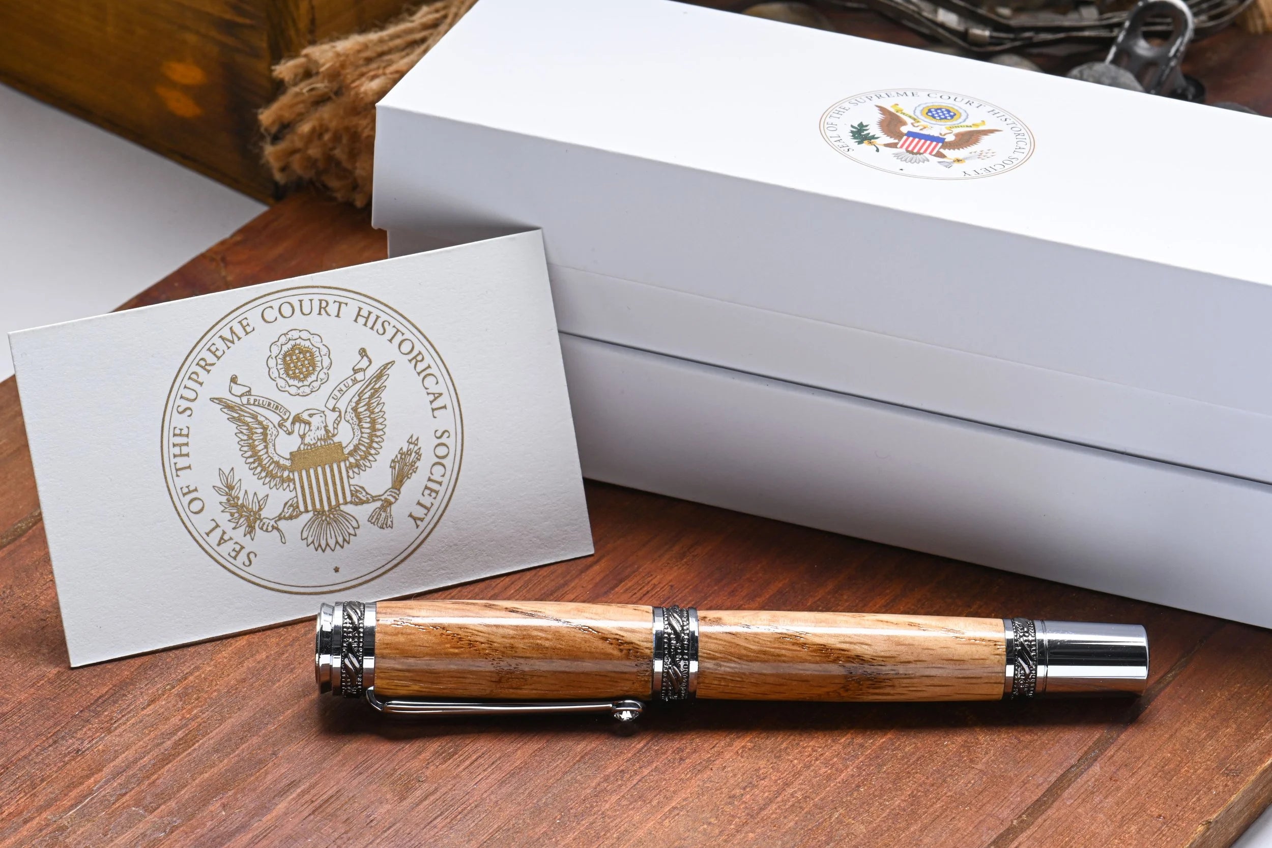In support of this esteemed mission, we had the privilege of collaborating on a special project - crafting 150 Special Edition Ambassador Writing Instruments. These exquisite pens were made using wood from an oak tree that stood on the grounds of the Supreme Court for an impressive 110 years.