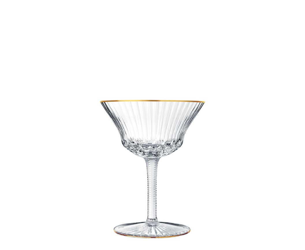 In 1979, the Apollo collection presented a new, contemporary vision of the golddecorated Thistle service, adopting its graphic signatures of vibrant Venetian stripes and a surprising bevel cut.