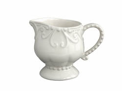 With an elegant grace of fine detailing, this footed petite pitcher completes the beverage accessories. A single handled, footed pitcher is perfect for your favorite cream or syrup. Made in Portugal for Skyros Designs, this fine, thin stoneware product is freezer, oven, microwave and dishwasher safe. Available in Chocolate, Eucalyptus, Ice Blue, Ivory, Jade, Linen and Yellow Creme.