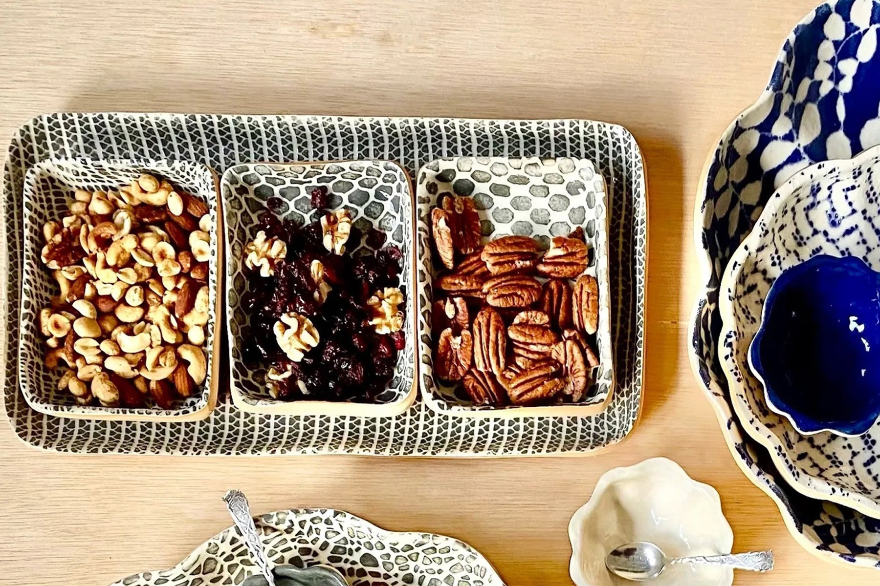 Terrafirma Chestnut Tasting Trays, Rectangular Dips- Braid, Taj, and Dot