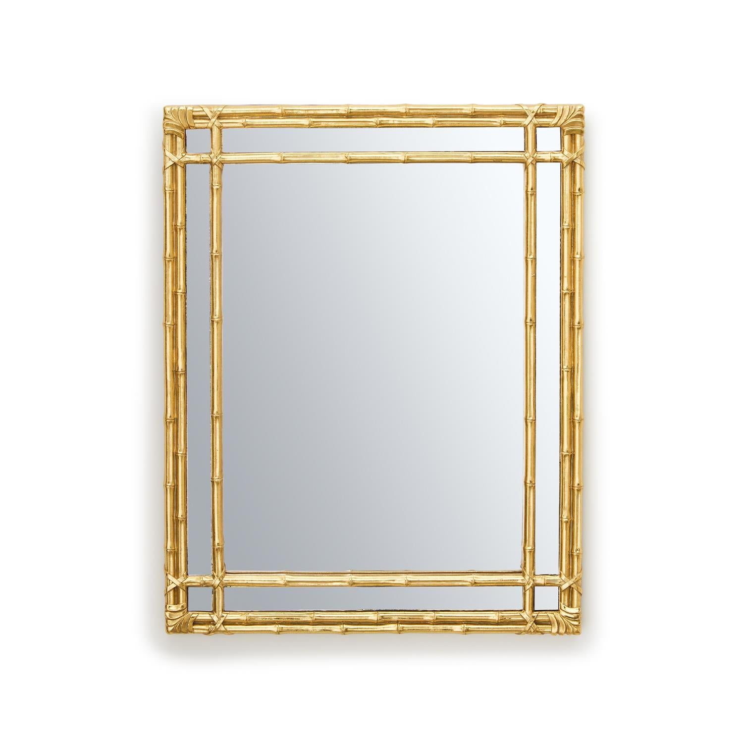 A bamboo frame gives this mirror its classic touch. It's covered in a gold gilt for a contemporary update that lets it fit in well in any space of the home. This mirror can be hung on a wall or can be used as a standing mirror in any living room, dining room or bedroom.