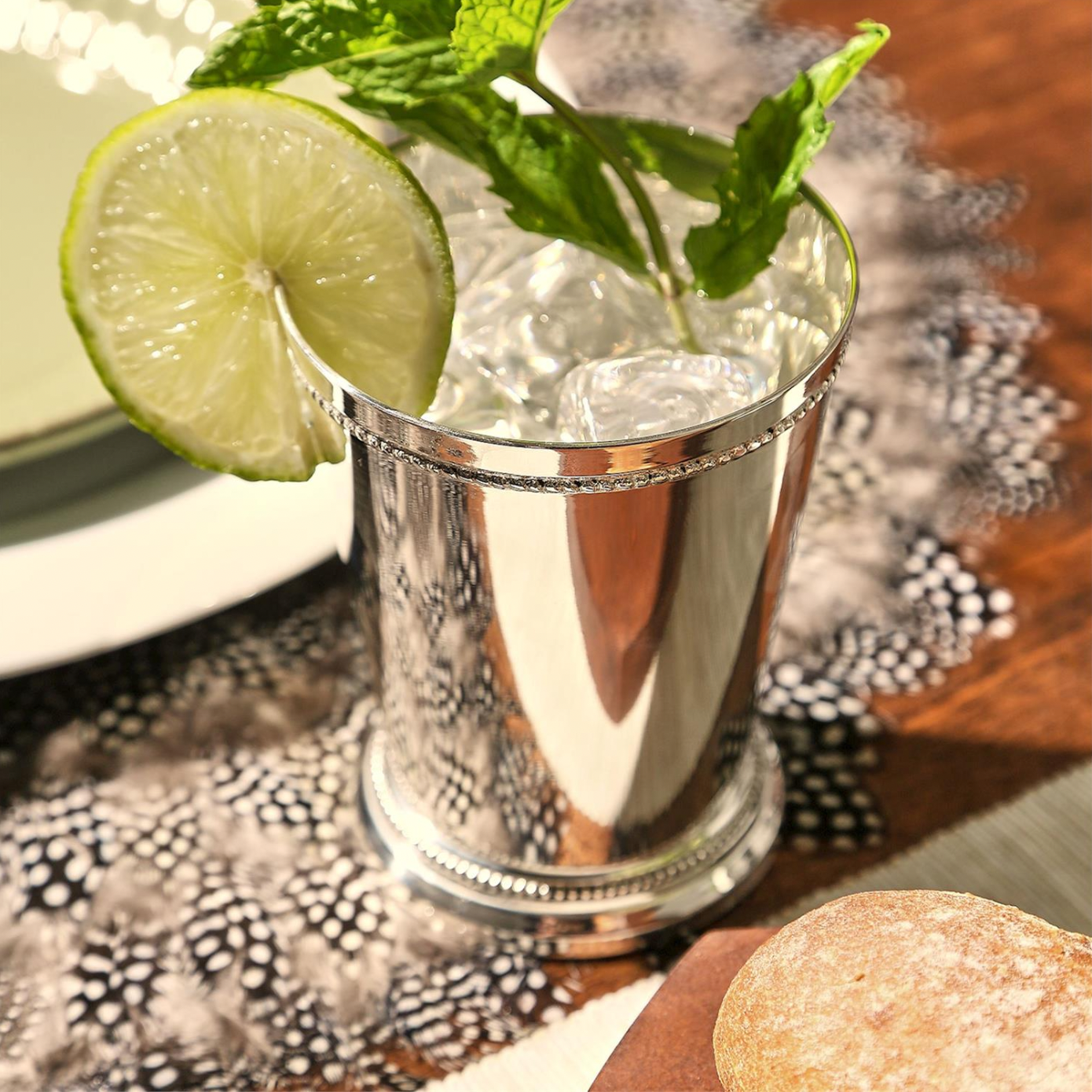 Inspired by classic mint julep cocktail glasses, these four silver-plated brass vases prefer to hold your favorite flowers. Each shimmering design features intricate details including three-dimensional dots along the top and bottom. Sold individually.