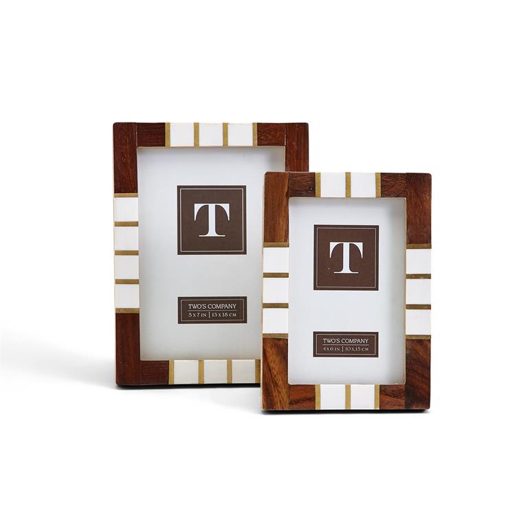 Modern and beautiful come together to create these gorgeous frames. Each frame accented with a brass detail along the edges. This beautiful frame can fit into almost any environment.