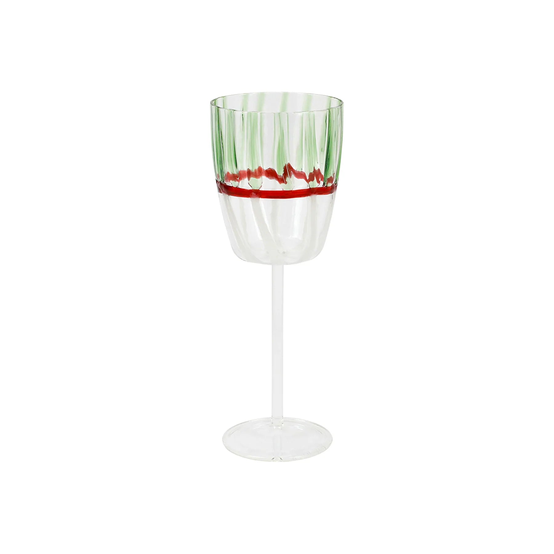 The Garland Wine Glass combines contemporary design with traditional style in a mouthblown piece fit for festive and elegant gatherings or casual holiday brunches alike.