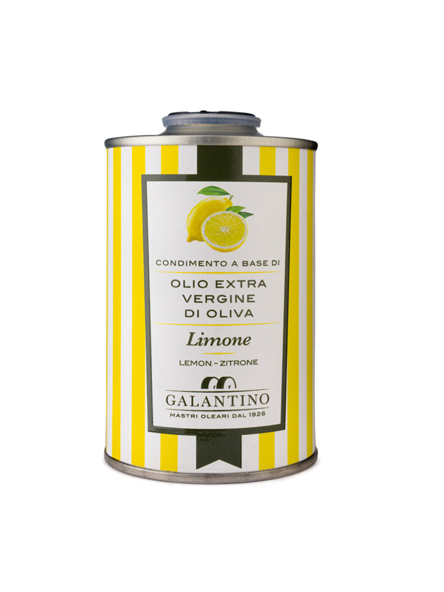 In the 1990s, the already renowned Galantino olive mill revived an ancient technique and produced their first flavored oil, by crushing the olives and fresh lemons together without any added essences. The result is an intense, bright, and citrusy flavor, recommended for flavoring fish, seafood, soups, salads, vegetables, white meat and fine sauces.